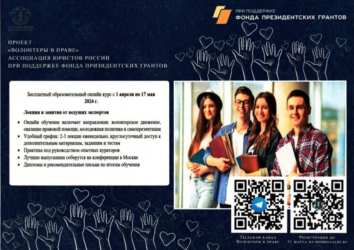 Первый поток обучения стартует 1 апреля 2024 года. Ассоциация планирует обучить не менее 750 волонтеров, обучающихся по юридической специальности.