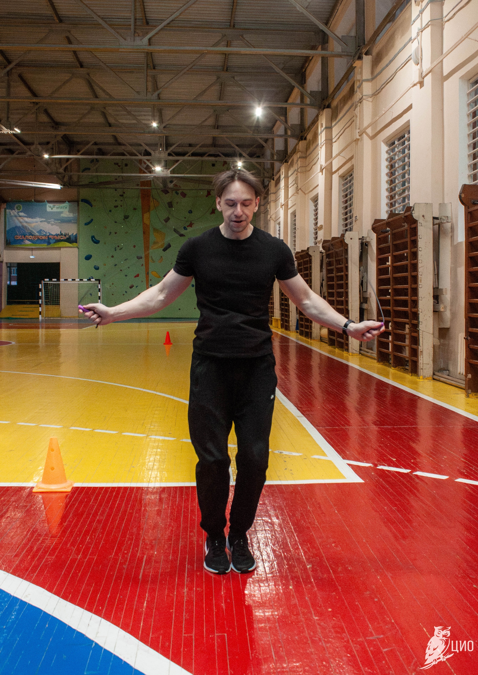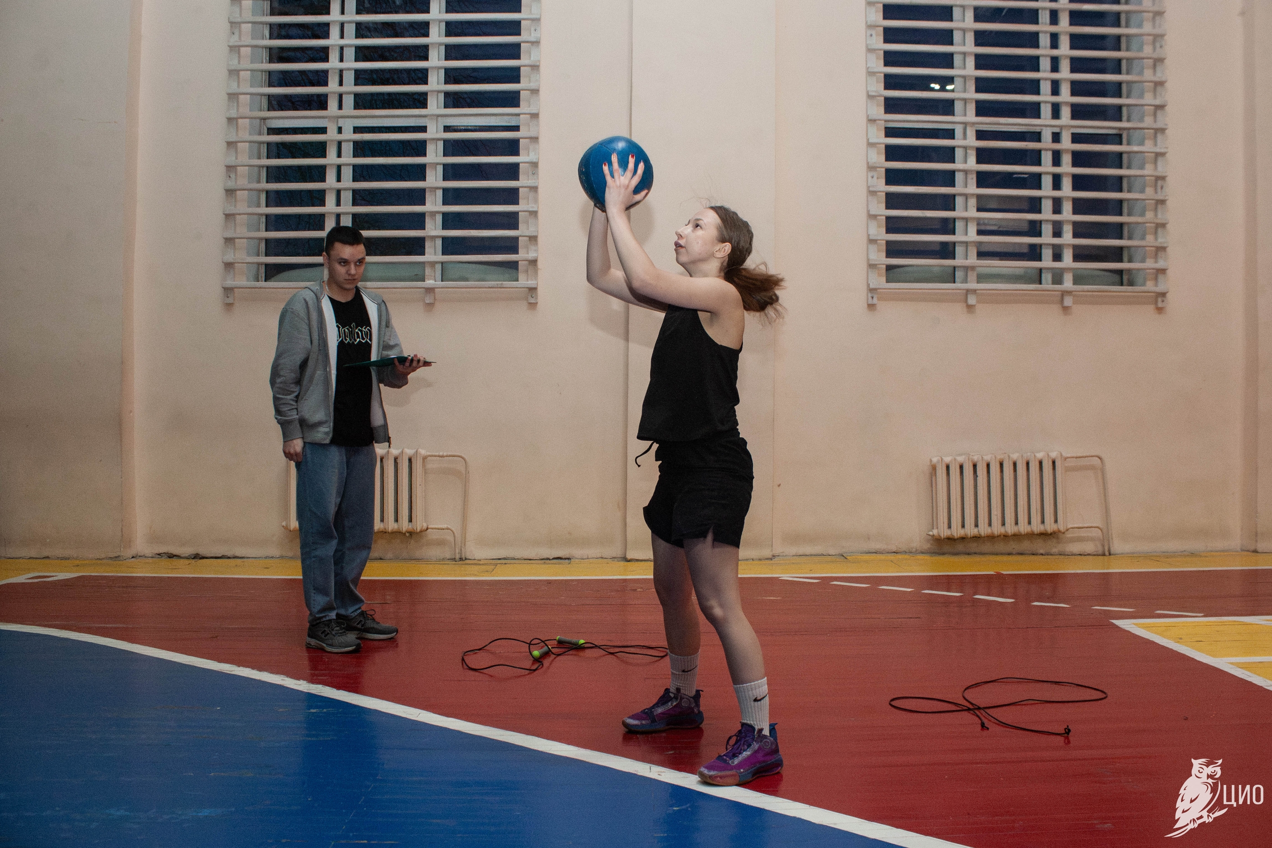 Студенты на скорость участвовали в челночном забеге, прыгали на скакалке, делали упражнения с фитболом.