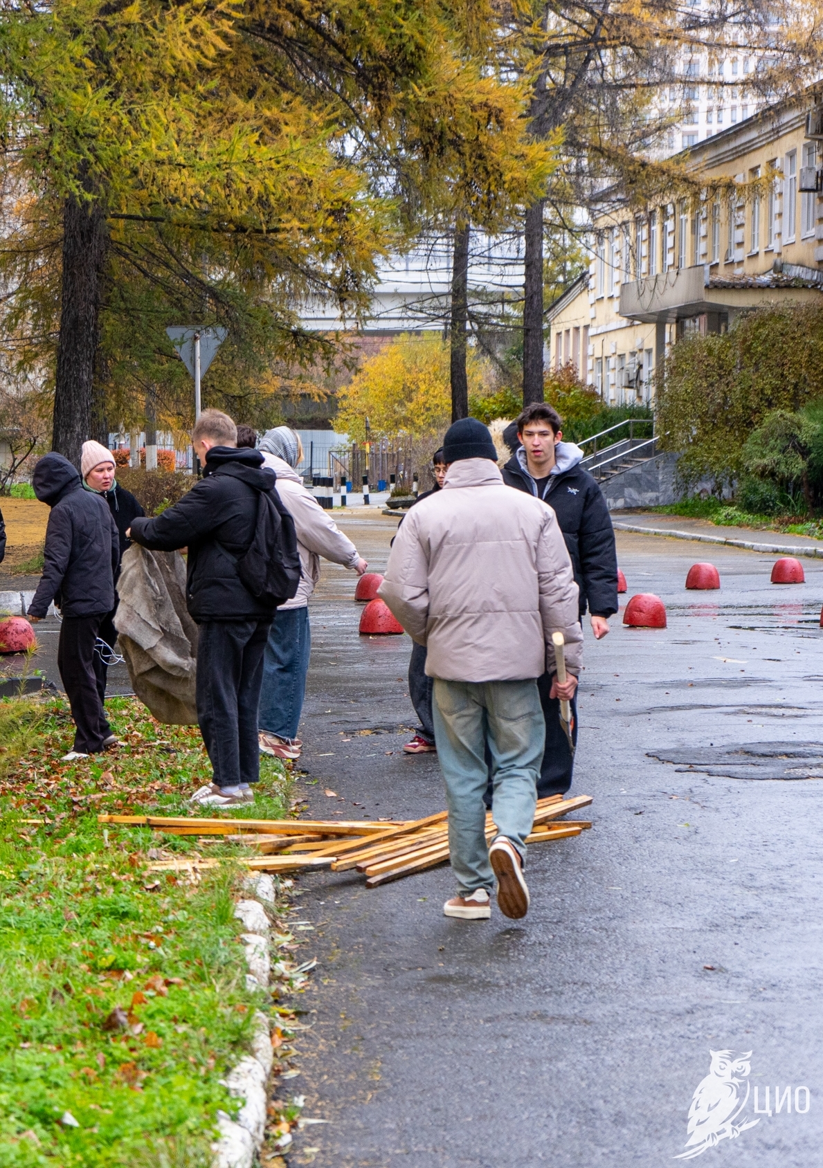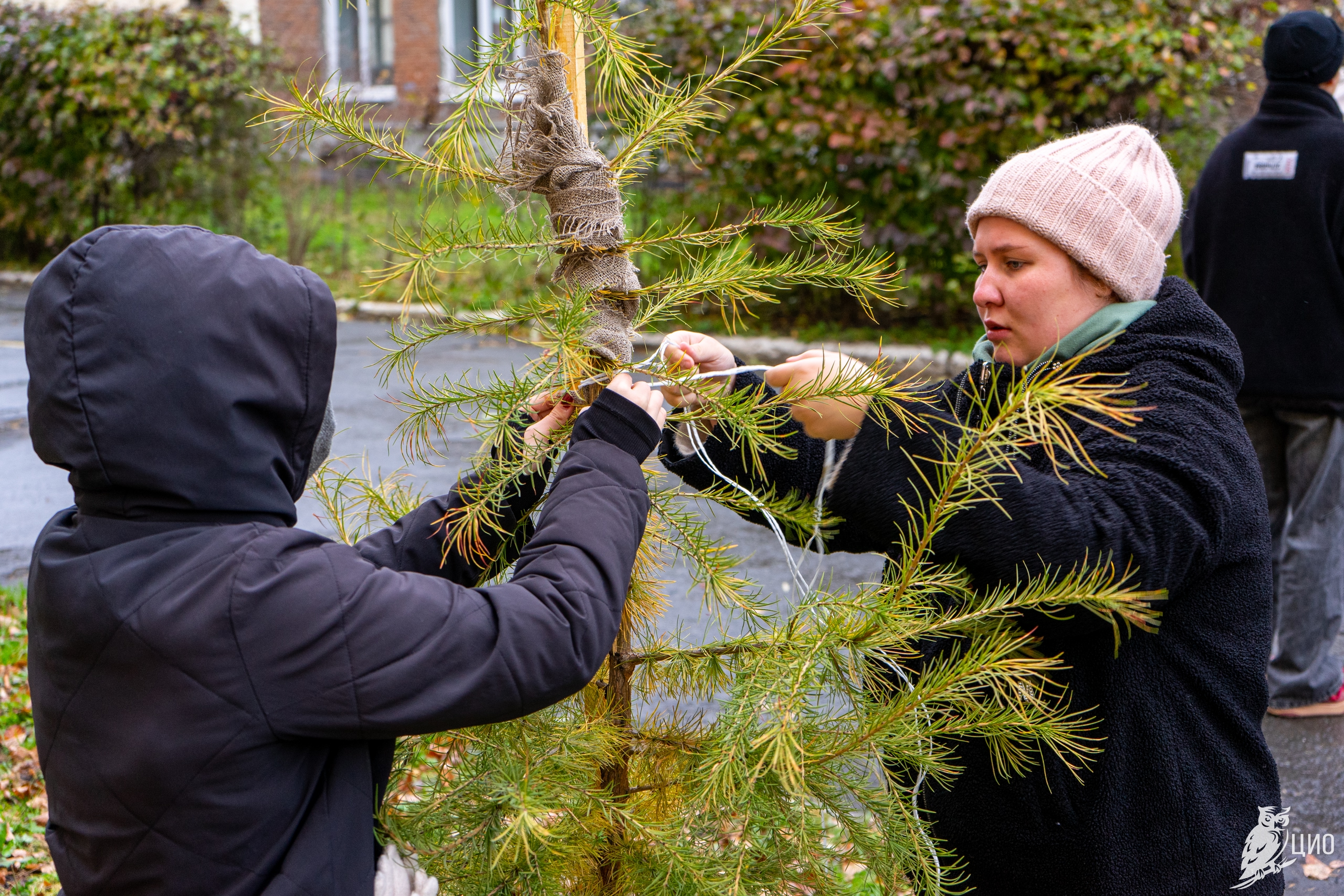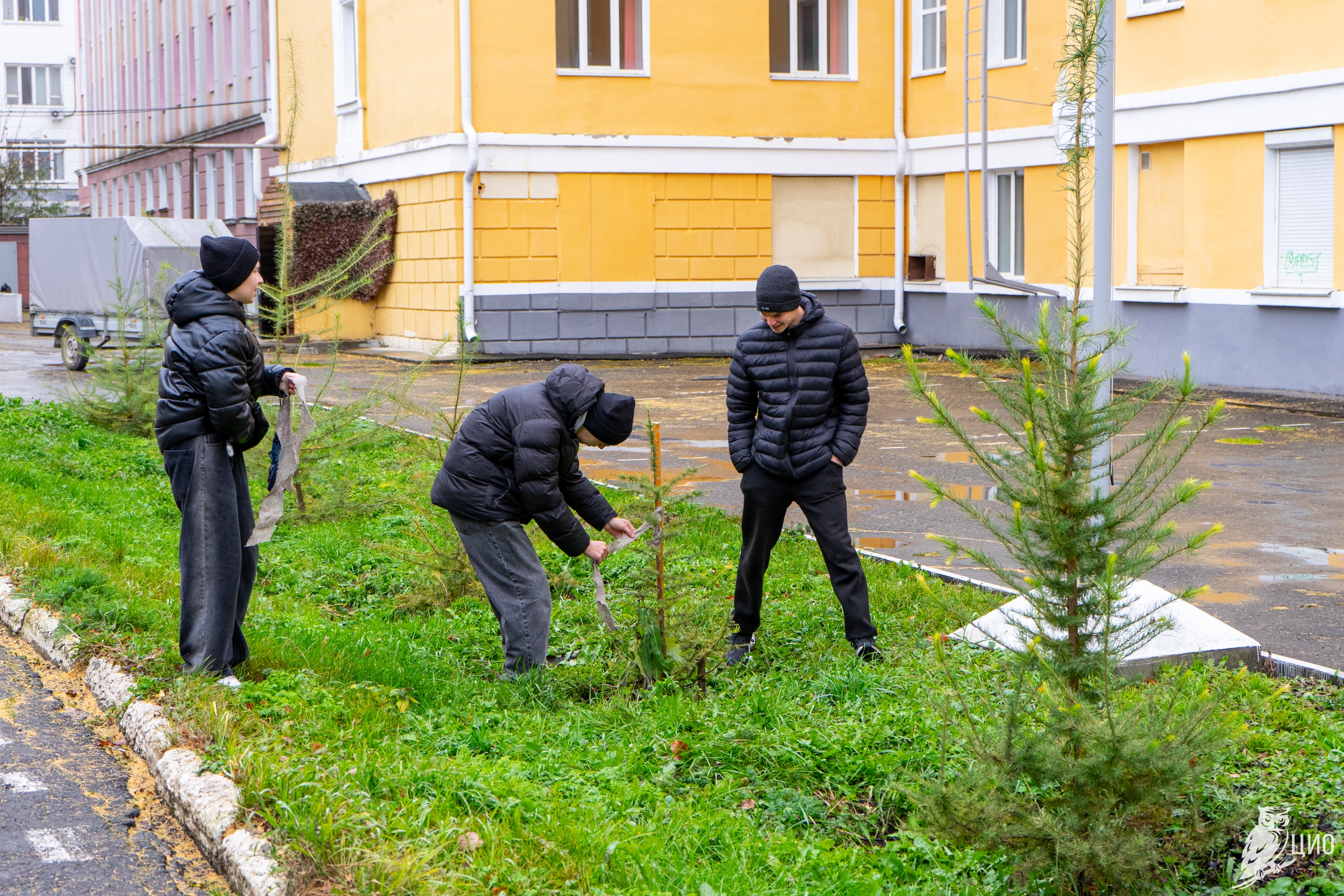 В рамках учебных занятий по лесоразведению и воспроизводству лесов студенты 1-го и 2-го курса Уральского лесотехнического колледжа провели подвязку и крепление деревьев лиственницы сибирской, которые были посажены вместо аварийных тополей у здания колледжа. Лиственница в этом году сильно подалась и значительно подросла, чтобы зимой саженцы не пострадали студенты укрепили их колышками.