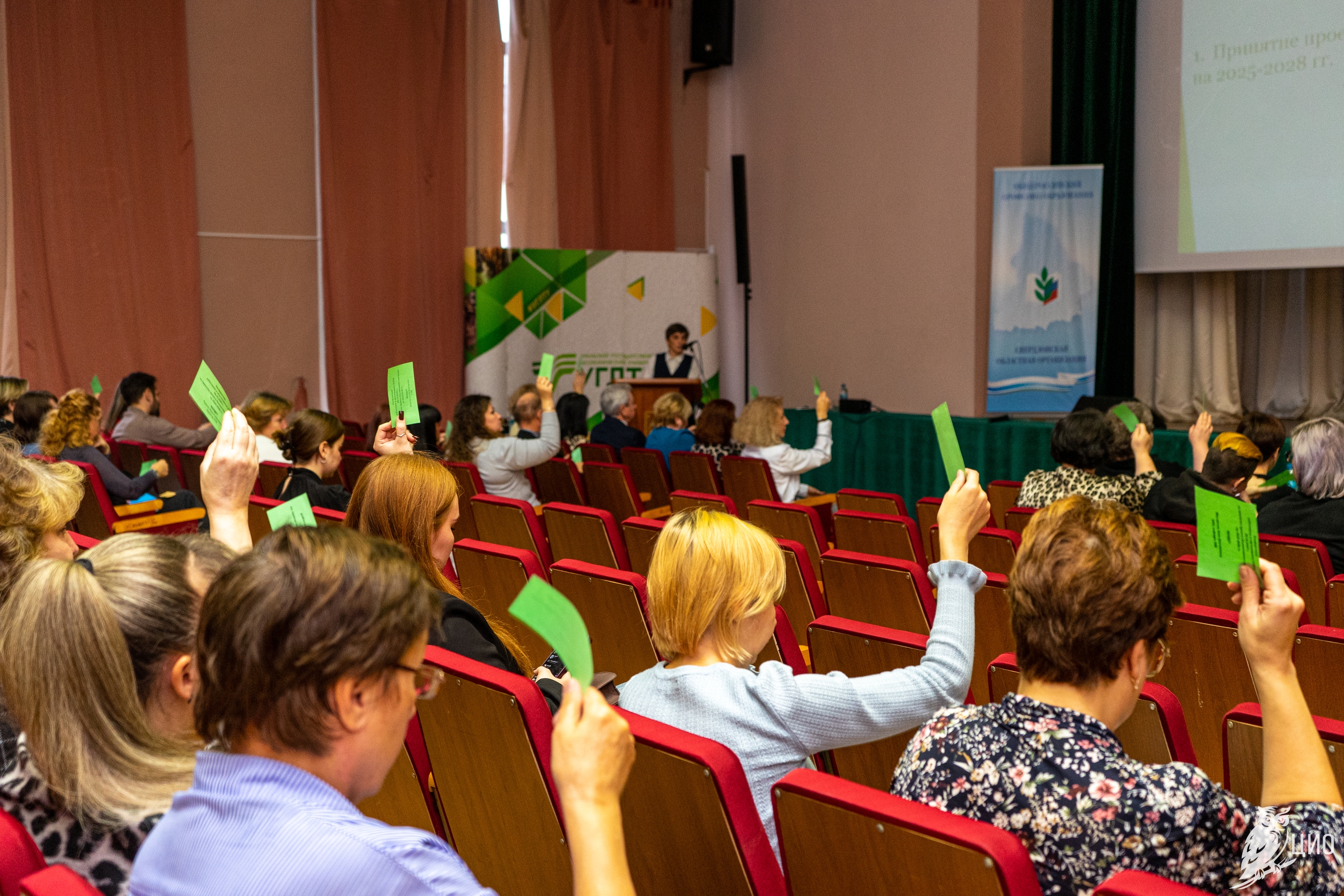 Делегаты конференции перед принятием документа заслушали доклады о результатах работы ректора Е.П. Платонова и председателей профкомов С.Б. Шишкиной и В.С. Елисеевой.